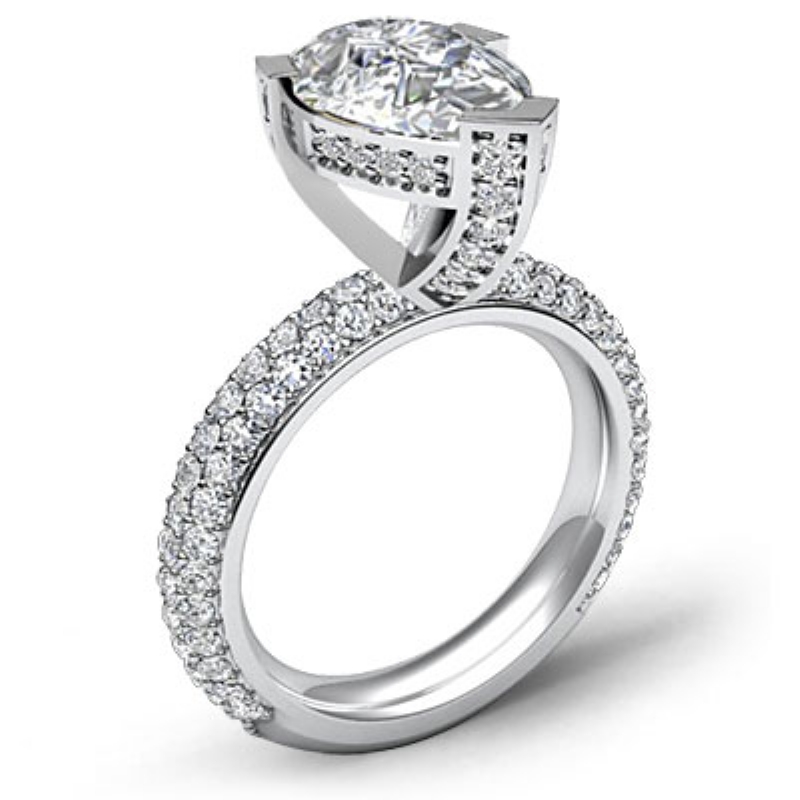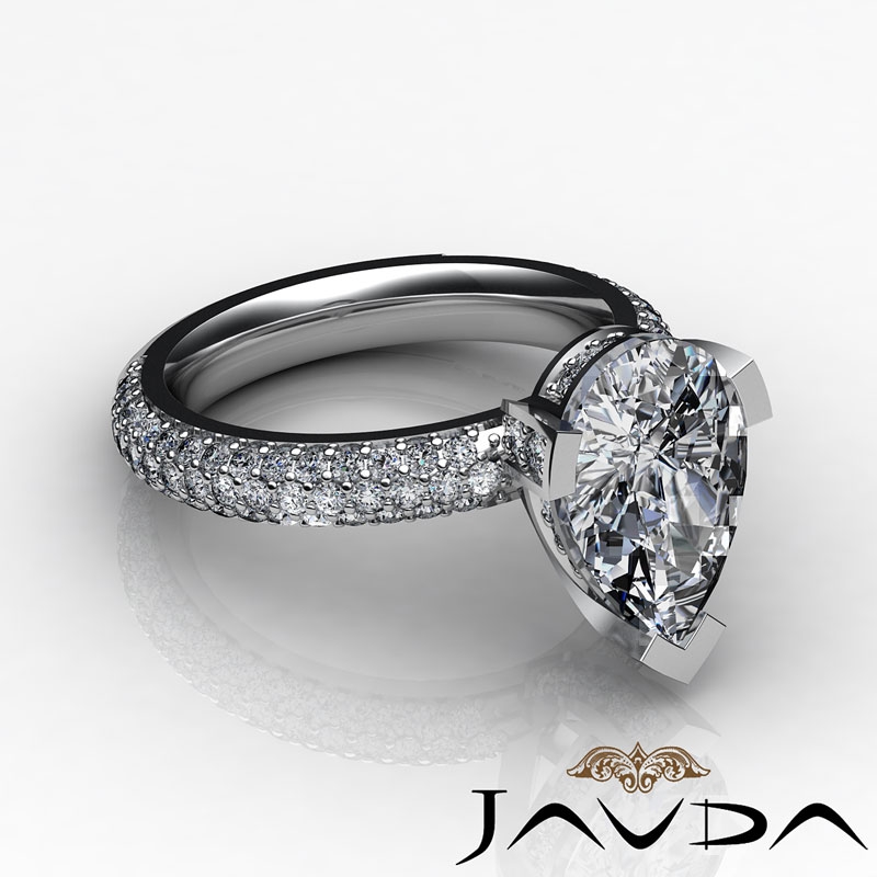 1.47Ct Diamond Pave Engagement Women Ring Pear Setting Platinum 950.