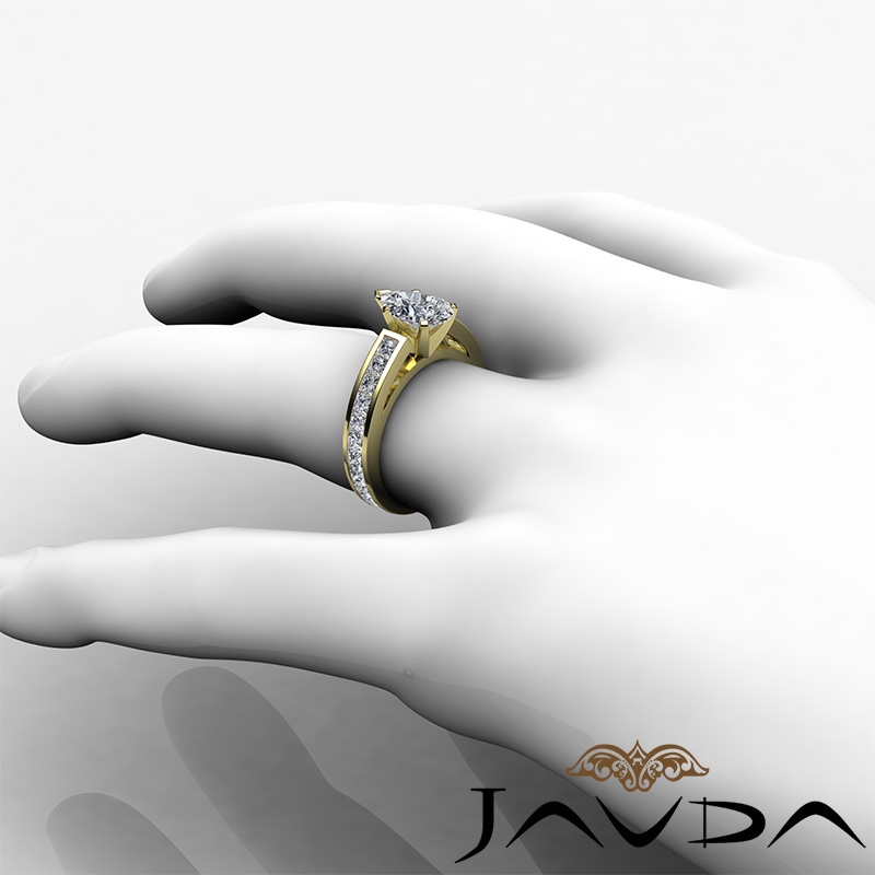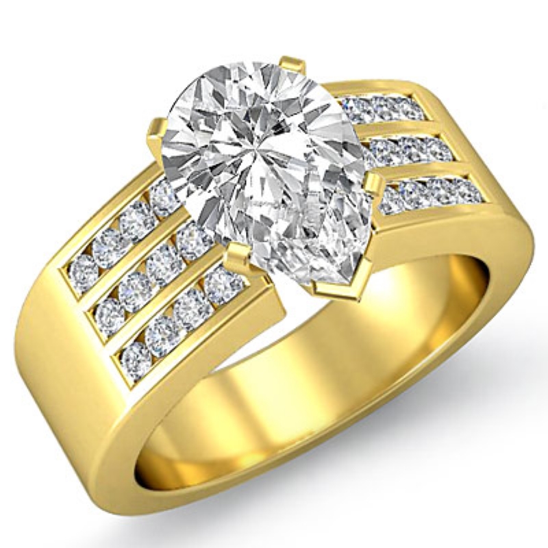 Channel Set Sidestone style Engagement Ring, center is Pear shape Diamond Report by GIA, D Color & VVS2 clarity, Made in 18k Yellow Gold (0.81 ct. tw.)