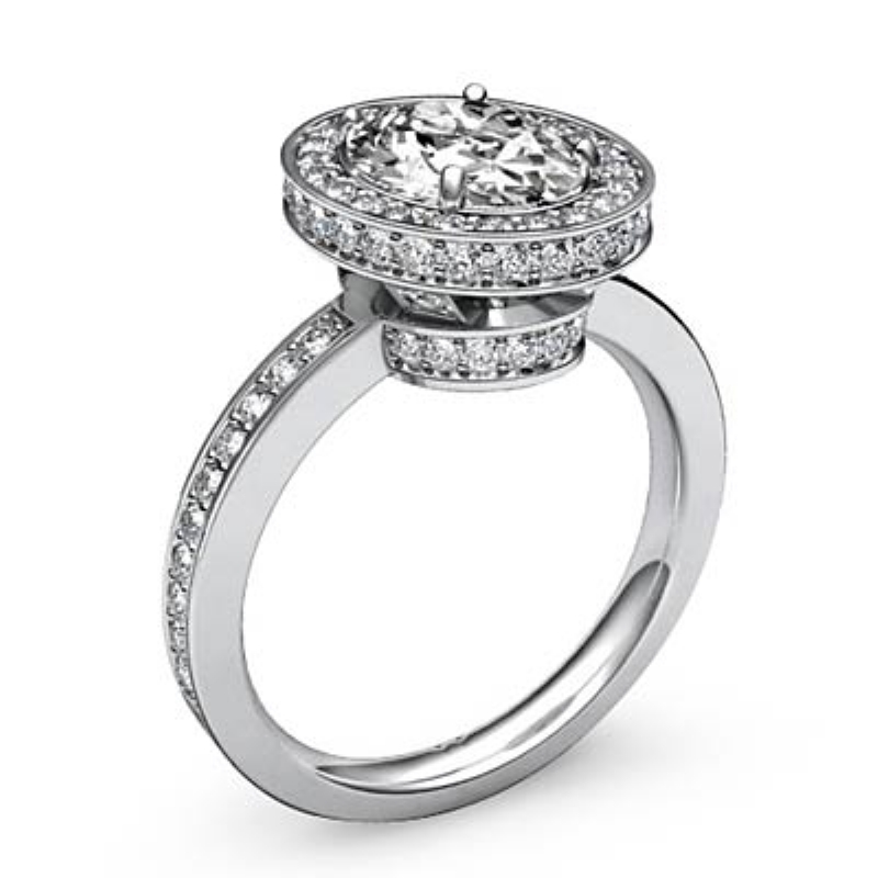 Basket Halo Pave Setting style Engagement Ring, center is Oval shape Diamond Report by GIA, F Color & SI2 clarity, Made in Platinum 950 (1.72 ct. tw.)