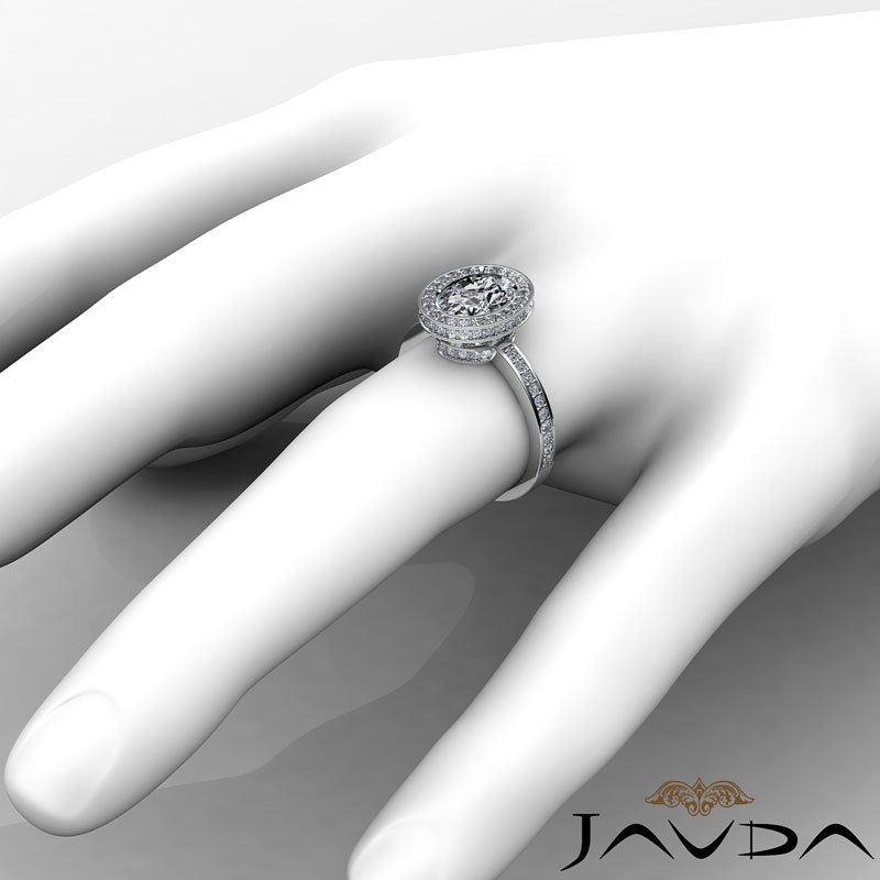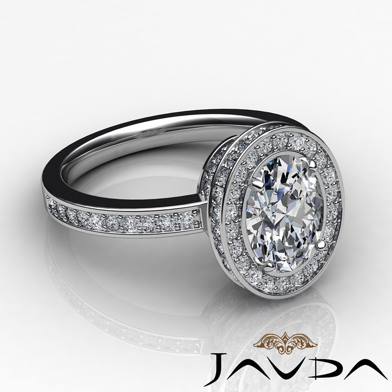 0.82Ct Diamond Engagement Ring Oval Semi Mount Platinum 950 Halo Pave Setting.