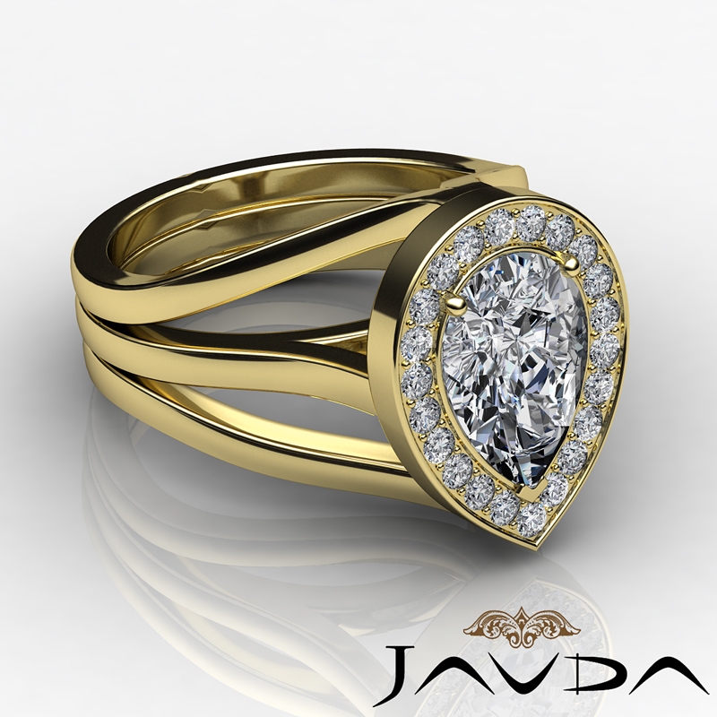 style Engagement Ring, center is Pear shape Diamond Report by GIA, D Color & VS1 clarity, Made in 18k Yellow Gold (0.9 ct. tw.)