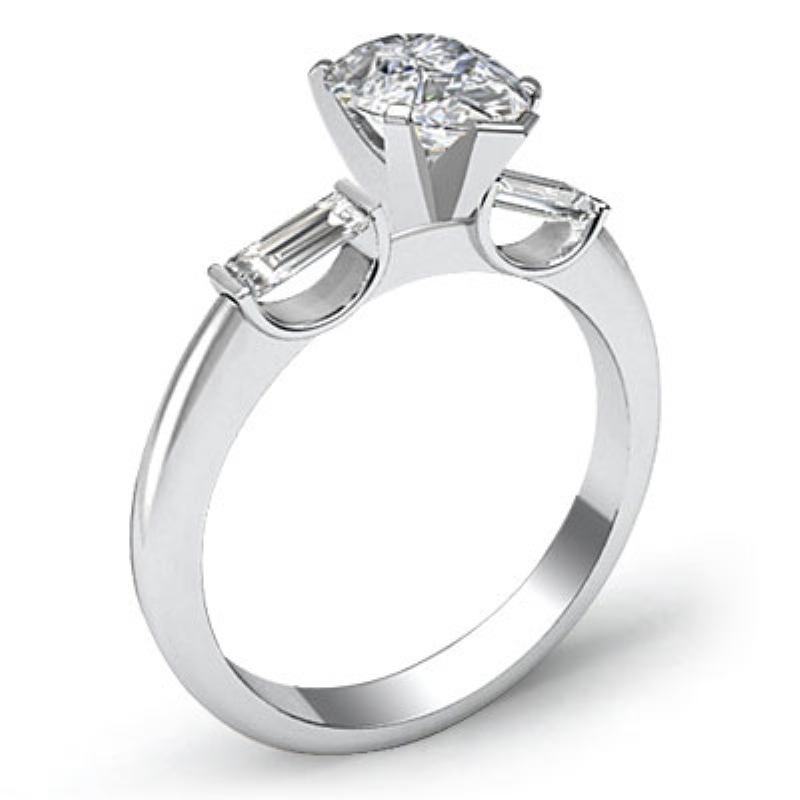 Baguette Round Diamond 3Stone Engagement Ring Setting 18k White Gold 0.3Ct.