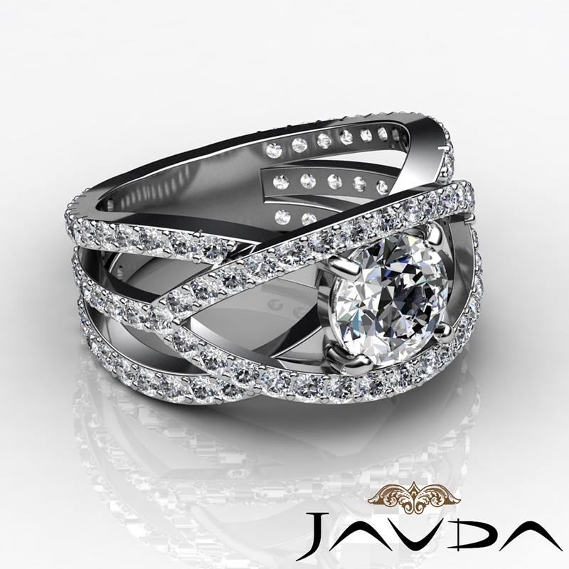 Pave Setting Sidestone style Engagement Ring, center is Round shape Diamond Report by GIA, G Color & VS2 clarity, Made in 14k White Gold (1.93 ct. tw.)