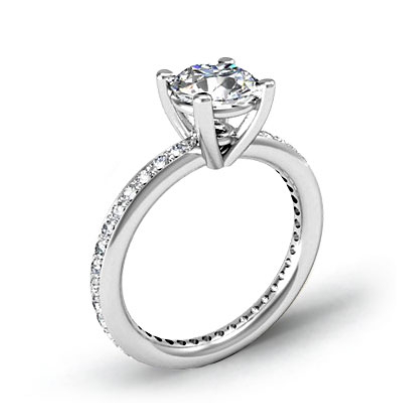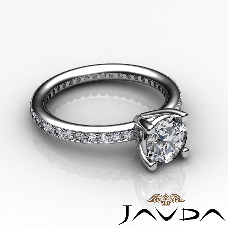 Eternity Classic Sidestone style Engagement Ring, center is Round shape Diamond Report by GIA, E Color & VS2 clarity, Made in 14k White Gold (1 ct. tw.)
