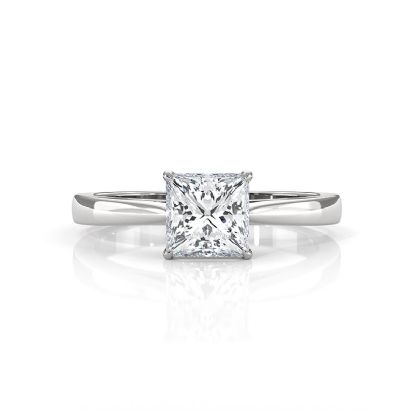 4g Princess Diamond Classic Solitaire Engagement Ring for Princess Diamond Setting made in 14k White Gold. Center Prong Modified to regular prong With out Basket.